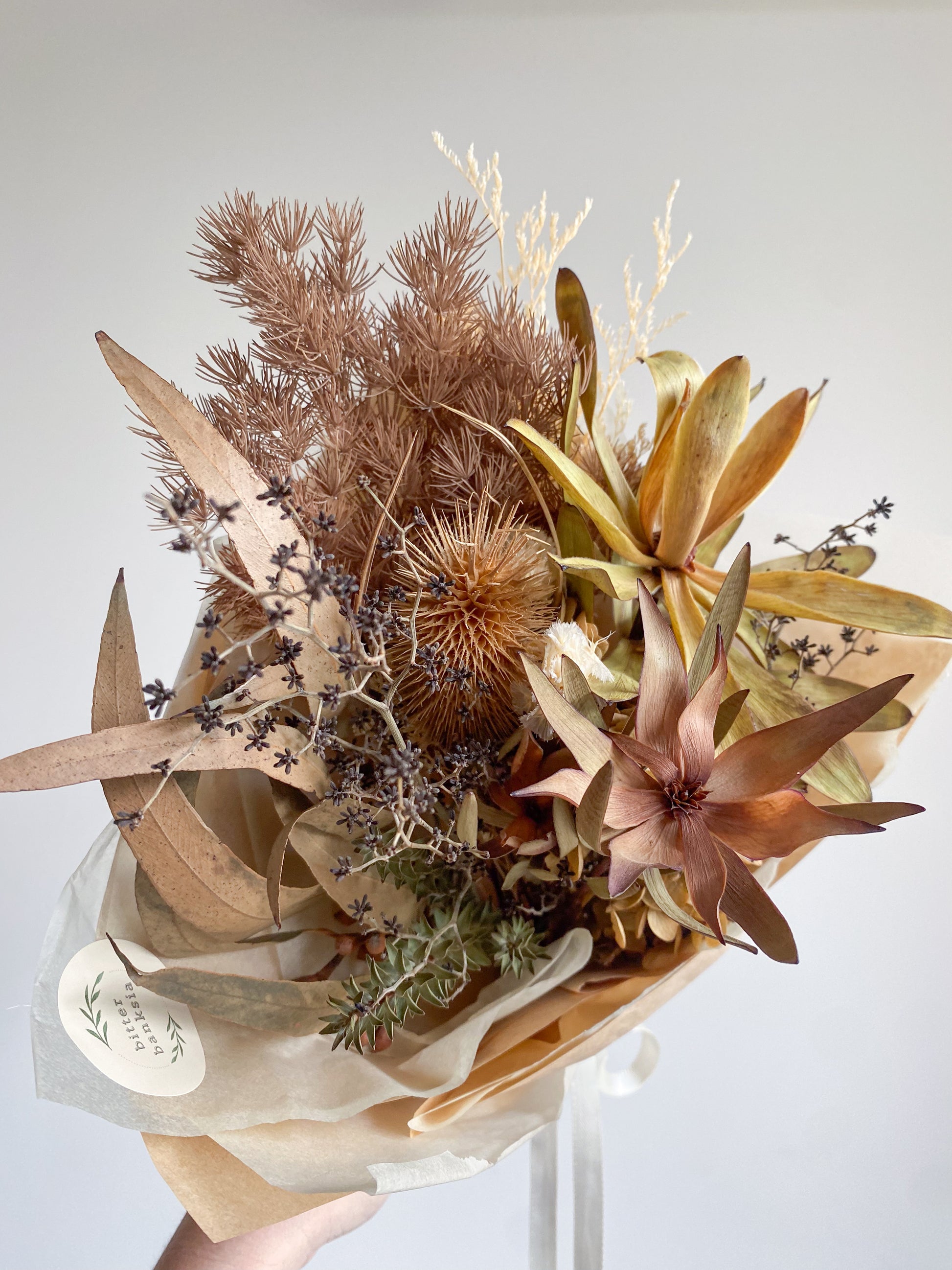 This posy is made of fresh native flowers that have been carefully dried by Bitter Banksia and then arranged for a longer-lasting floral piece.