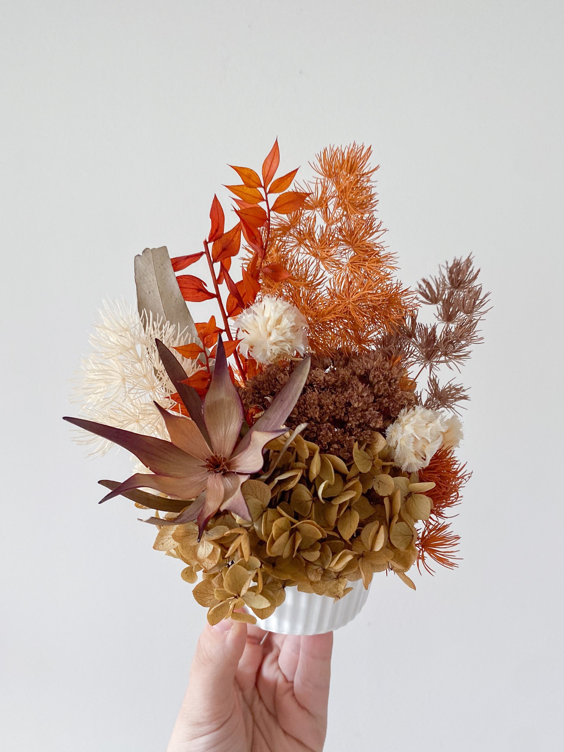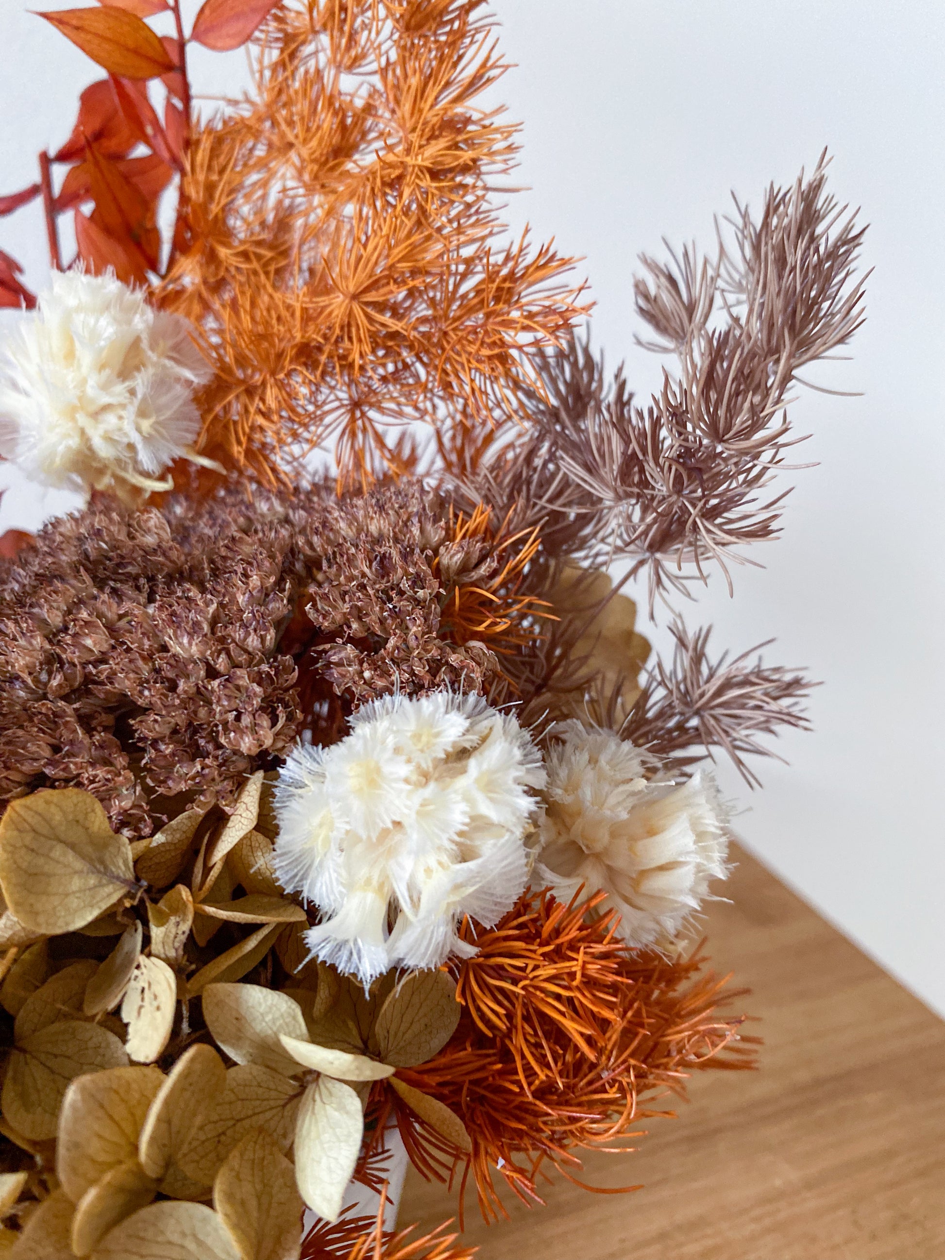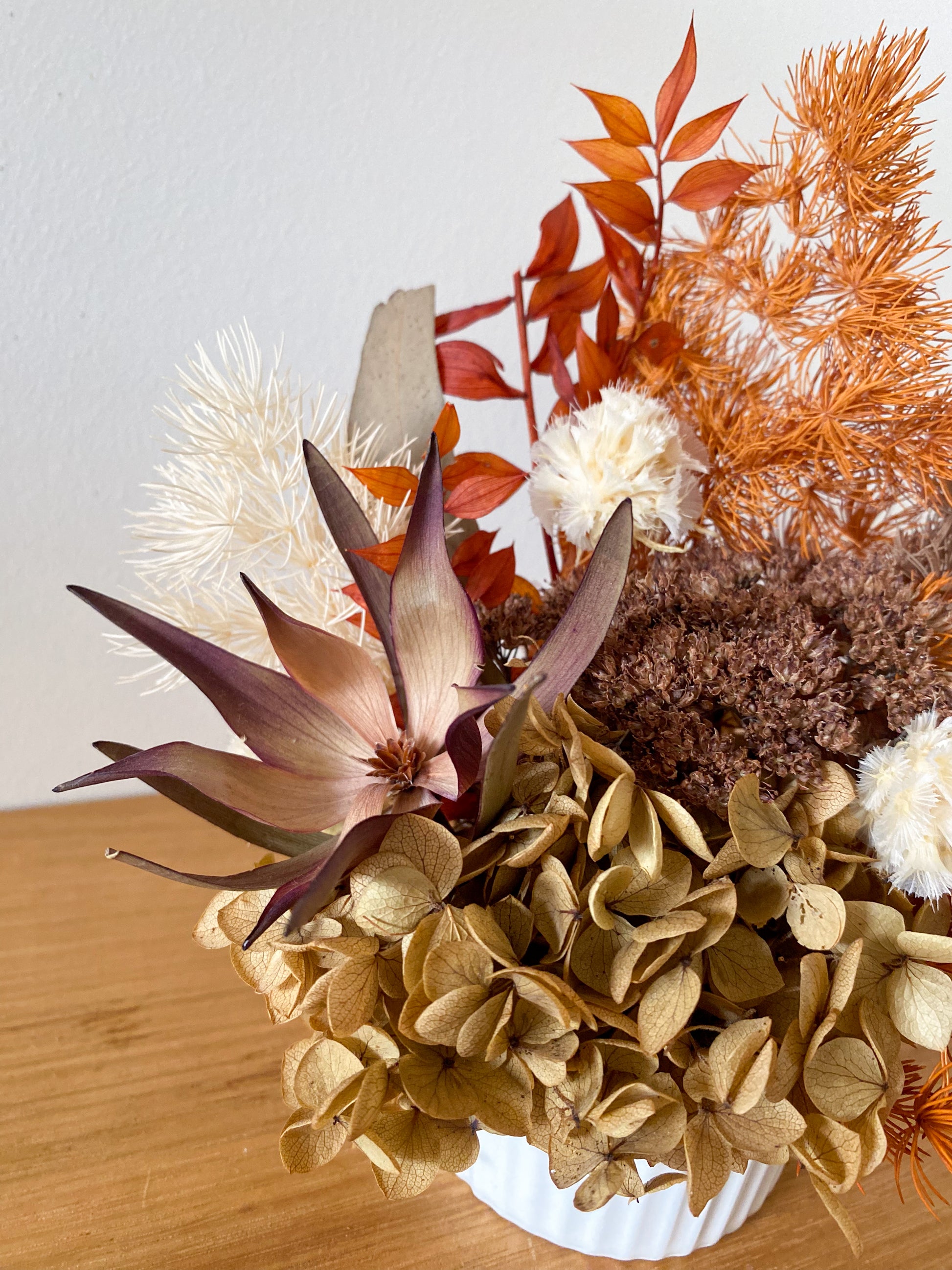 Featuring a dried leucadendron and shades of ming fern, this statement piece is perfect as a gift for a friend or a treat for yourself!